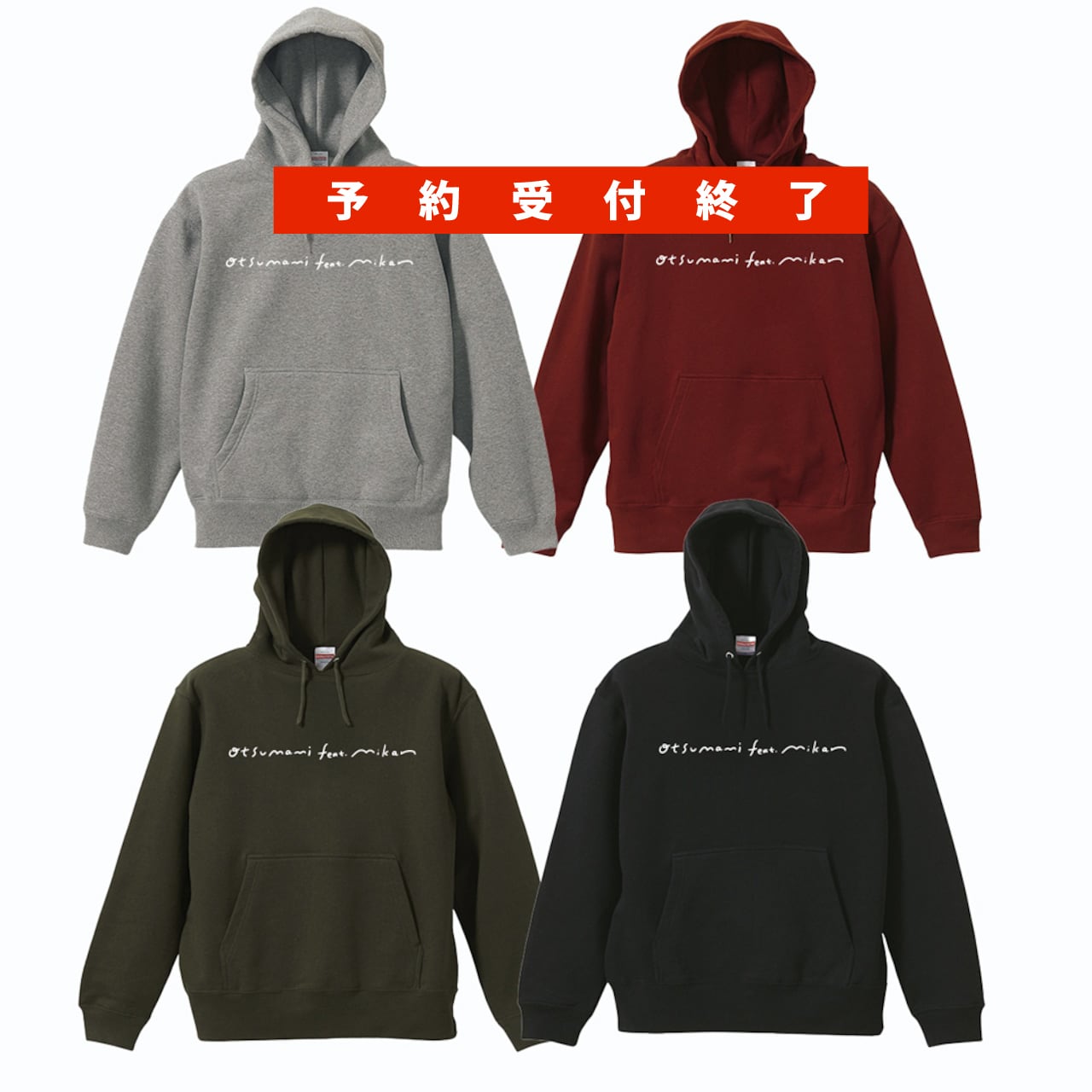 カラー4色(M.L.XL)のプルオーバーパーカを受注販売。
